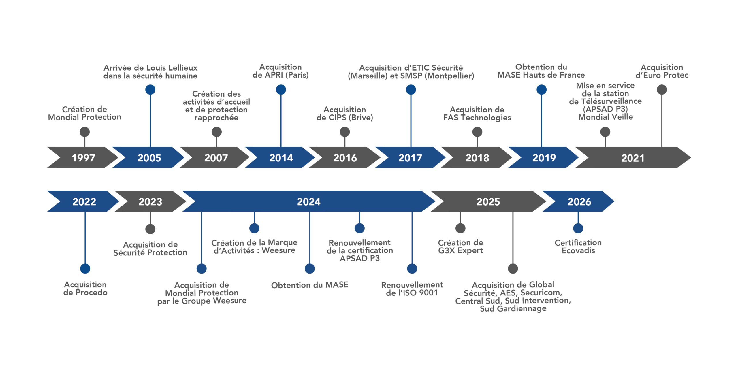 Depuis lors, nous avons connu une croissance rapide, en développant notre offre de produits et de services dans plusieurs domaines de la sécurité.